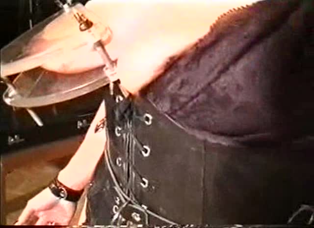Amber Rayne assfucked by 2 big dicks while folded in half and restrained in strict metal bondage!