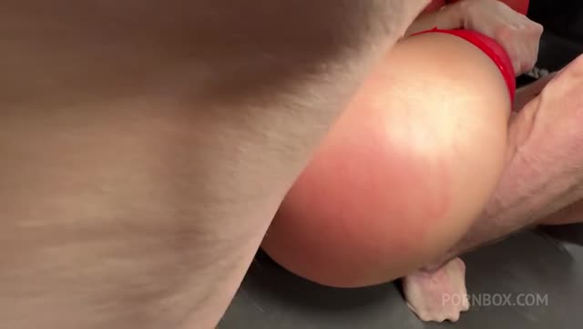 Big butt brunette Charlotte Cross bound down and roughly fucked with tag team dick down!